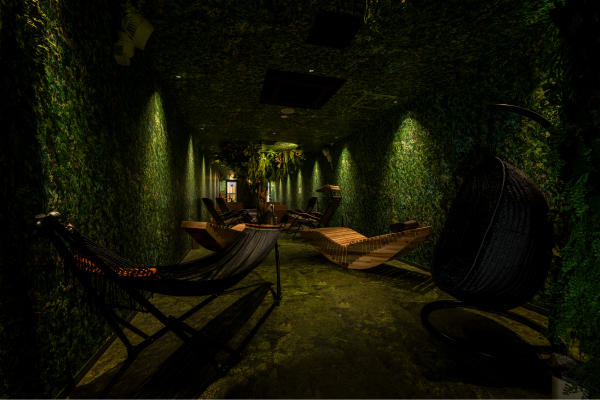 森林浴のようなととのいスペースと、